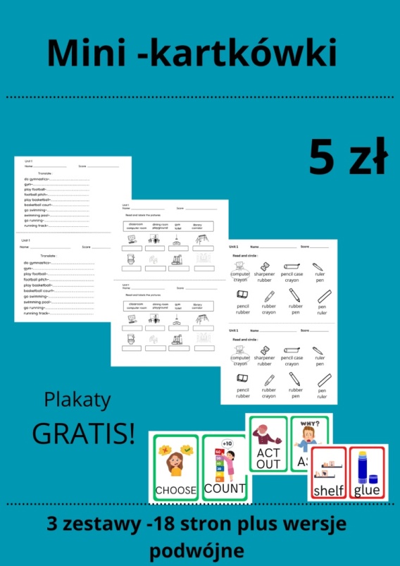 Mini kartkówki z kursu KIDS CAN. Dotyczą głównego słownictwa z lekcji pierwszej. Klasa pierwsza czyta i wybiera wyraz, klasa druga wybiera i podpisuje , klasa trzecia tłumaczy słówko na język polski. Gratis plakaty do kursu